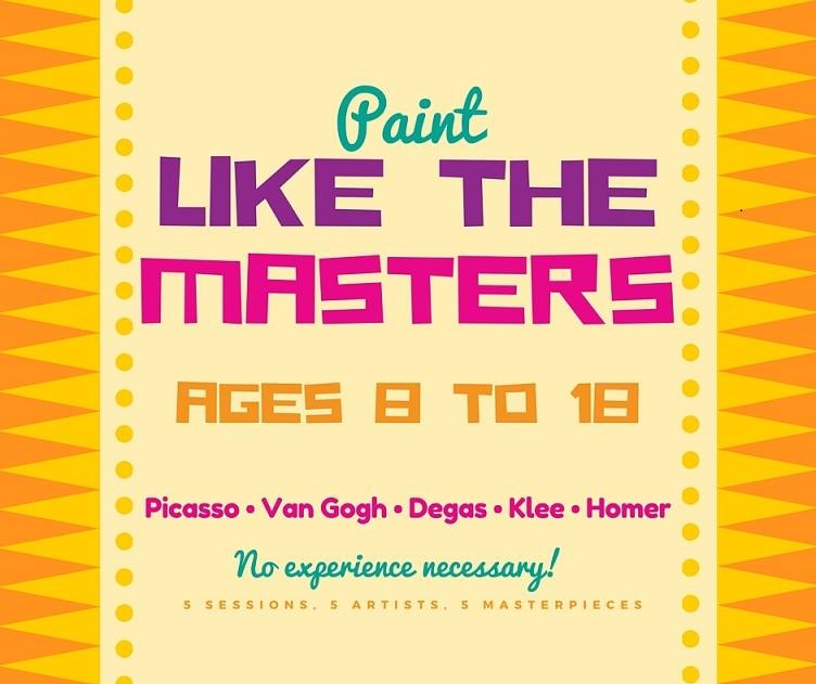Come paint a masterpiece! No experience necessary and kids from 8 to 18 are welcome! Sessions are 3 hours long and you can sign up for all 5 or drop in and pay as you go!
