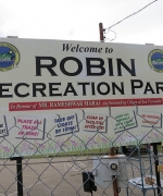 Sporting events held here include cricket and football. There is a large paved court with bleachers and lighting. There is also a play park for children on these grounds in a grassy area which includes swings, slides and see-saws.